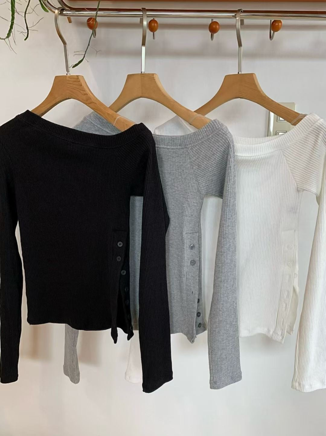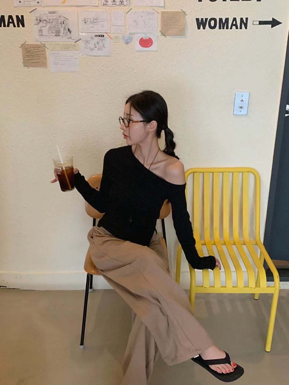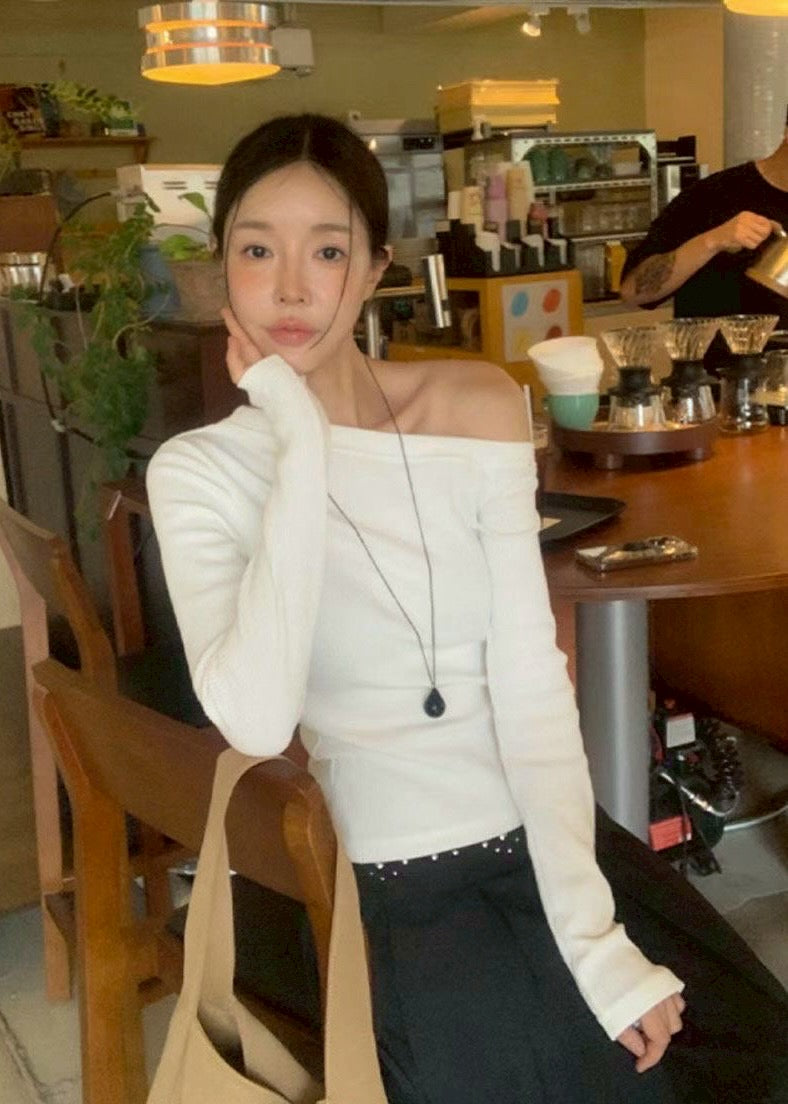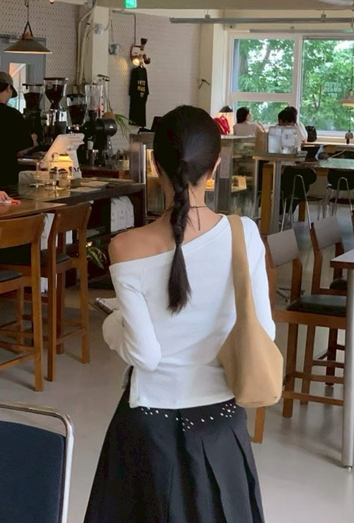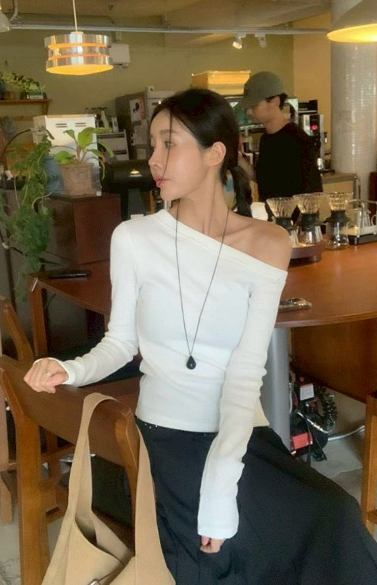 領口自然的斜切線條,讓鎖骨線條更明顯,舉手投足間自帶優雅氛圍。