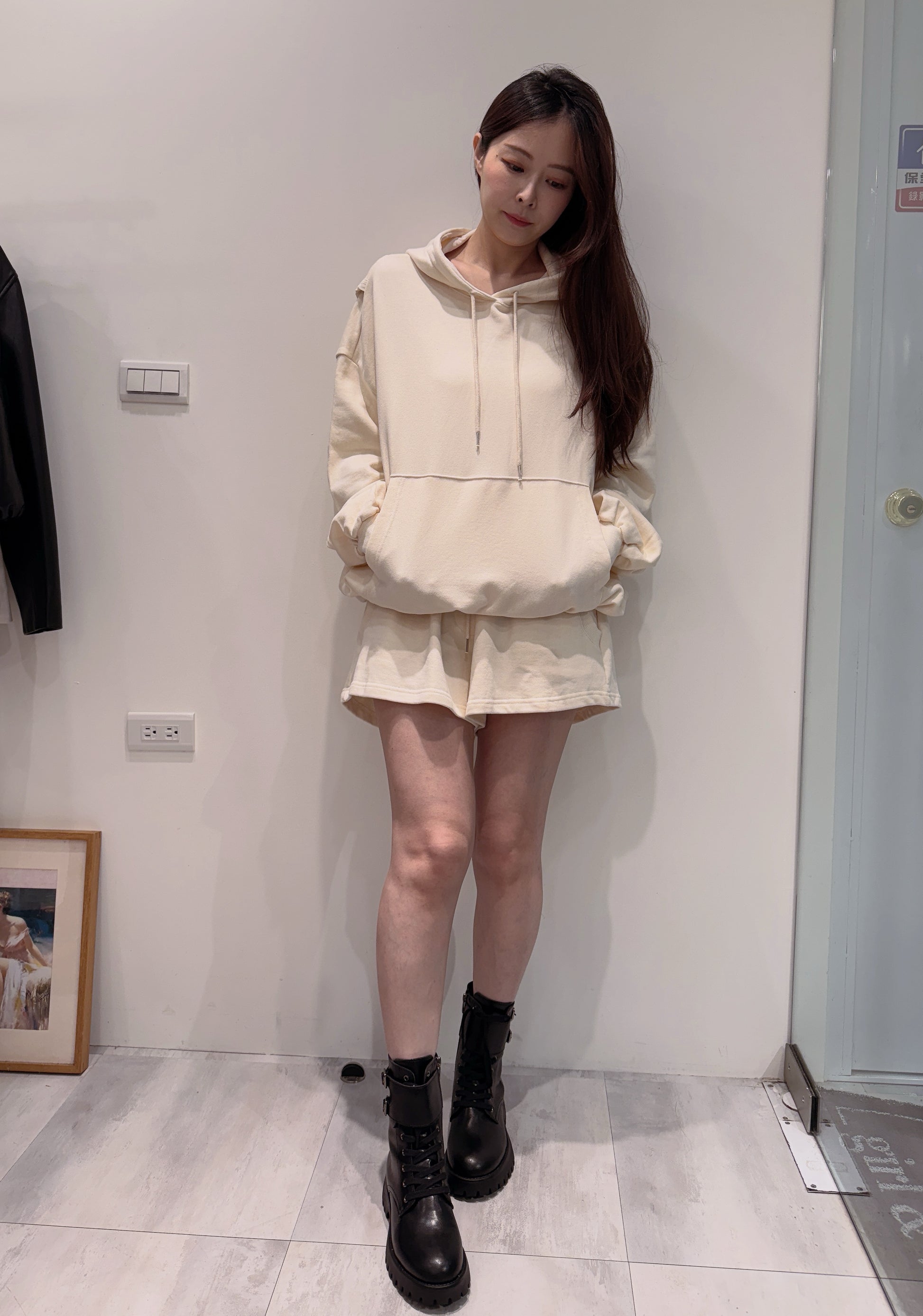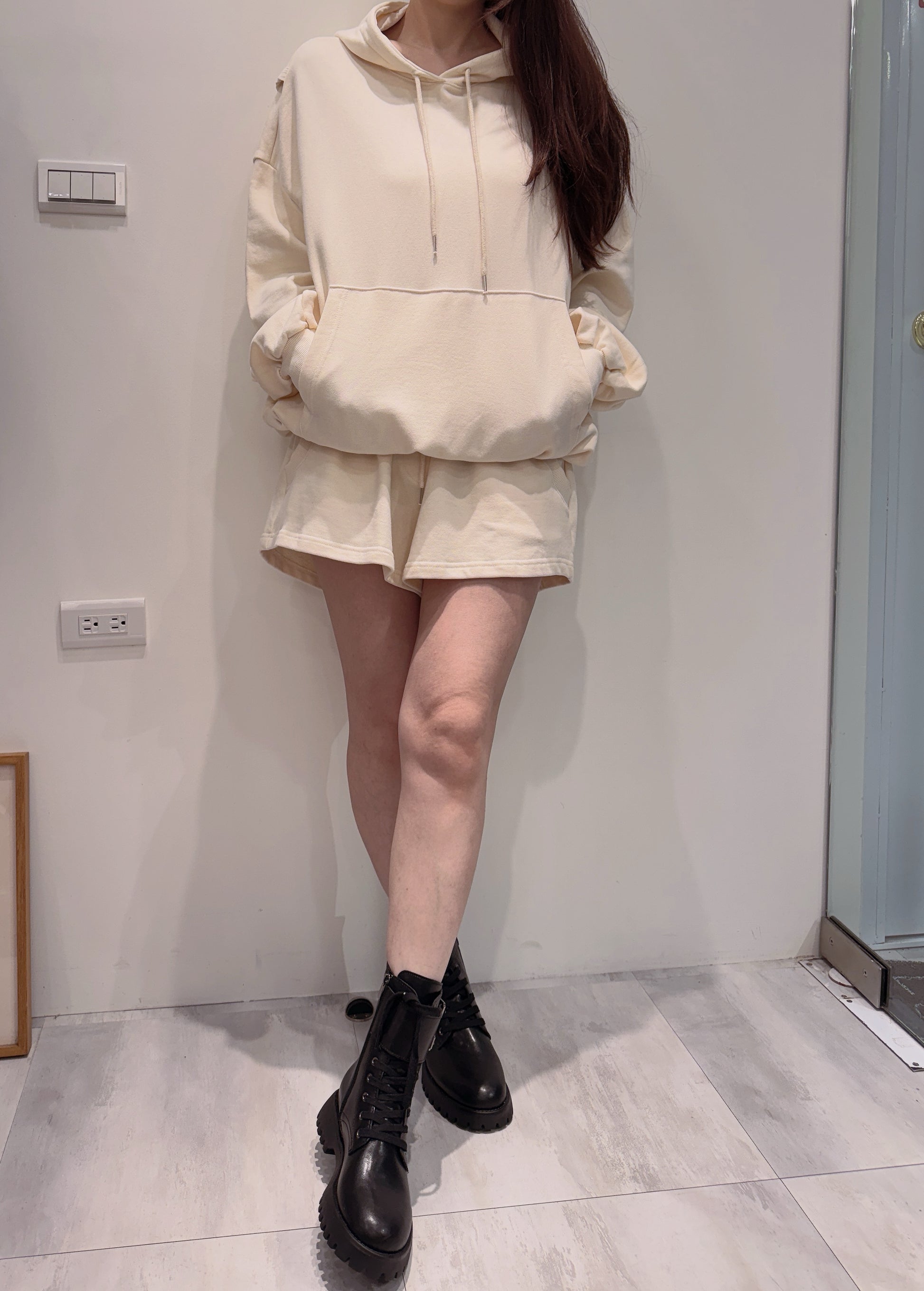 下身短褲彈性舒適,腰頭不勒身,在家休閒或外出搭靴、球鞋都自然有型