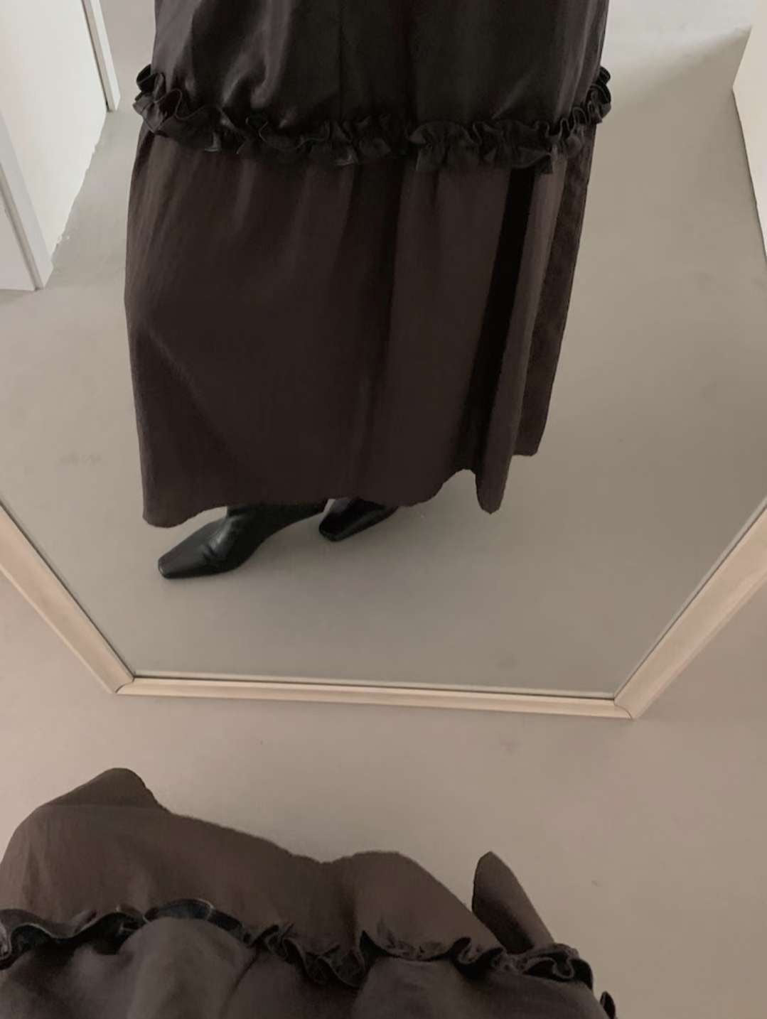 微光澤荷葉摺邊長洋裝