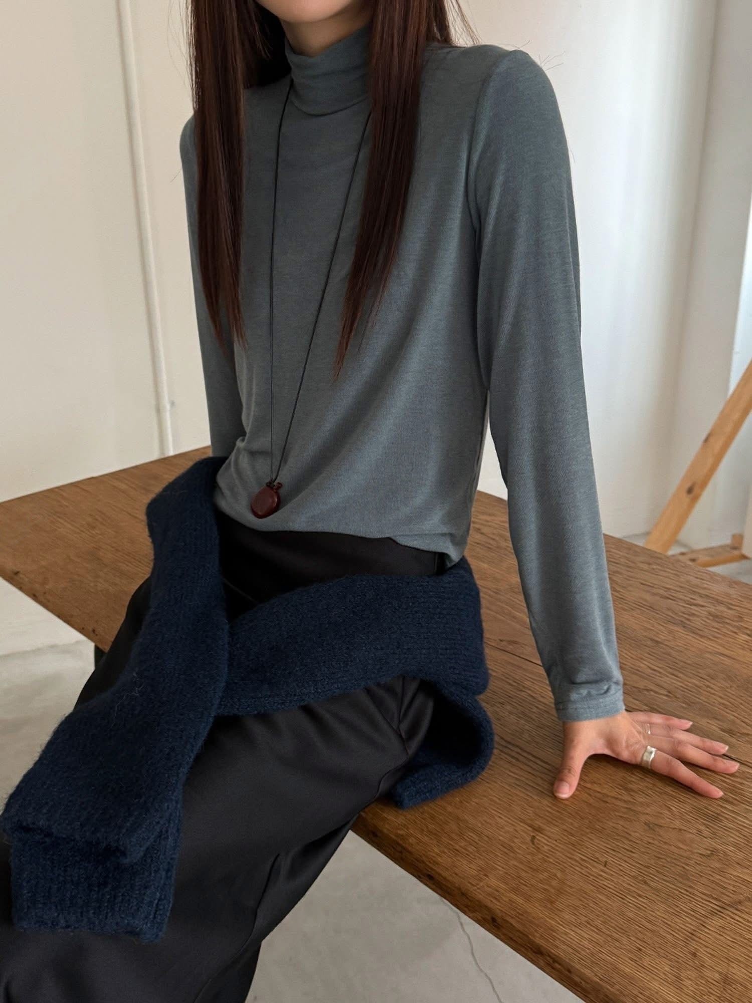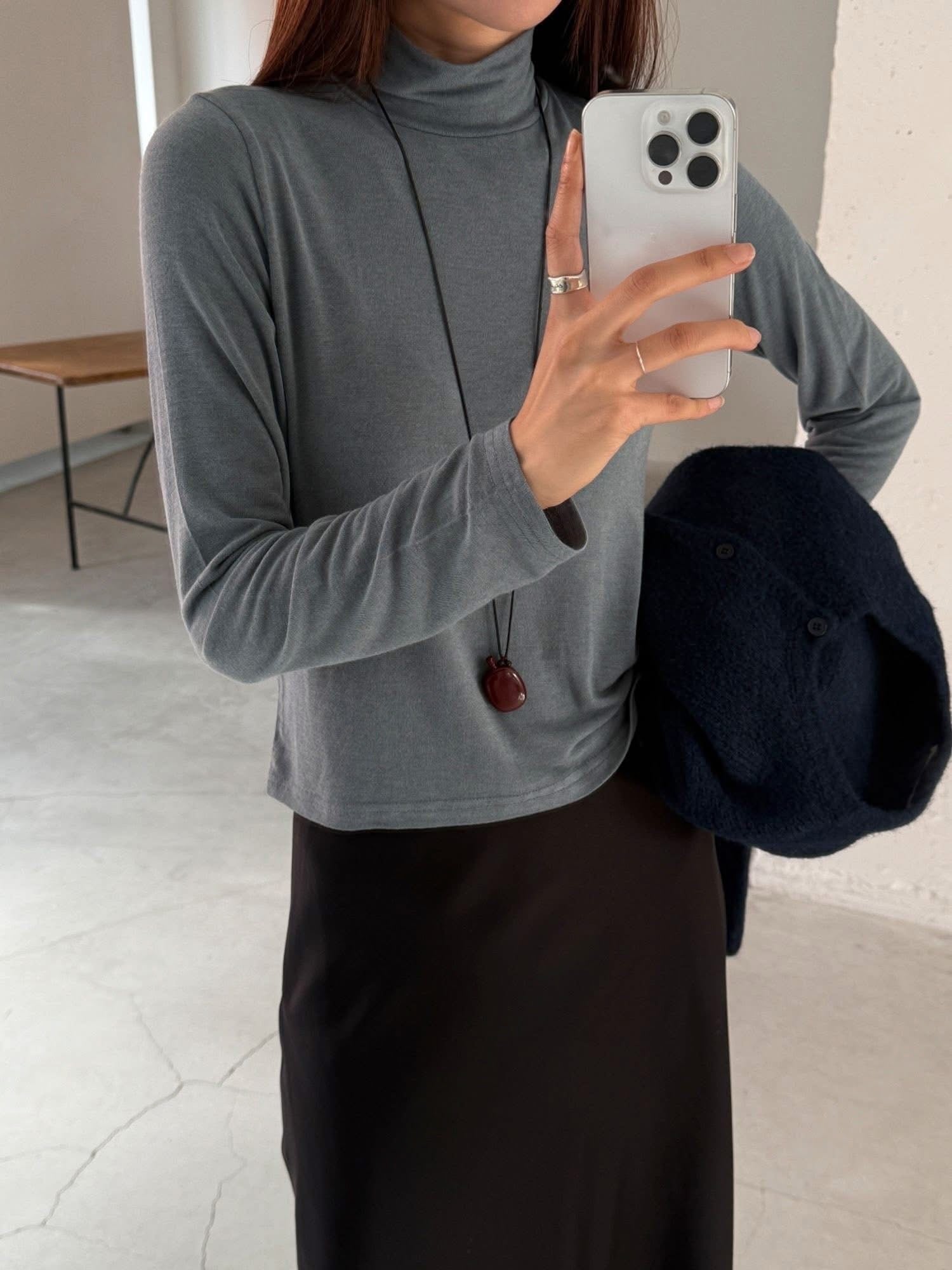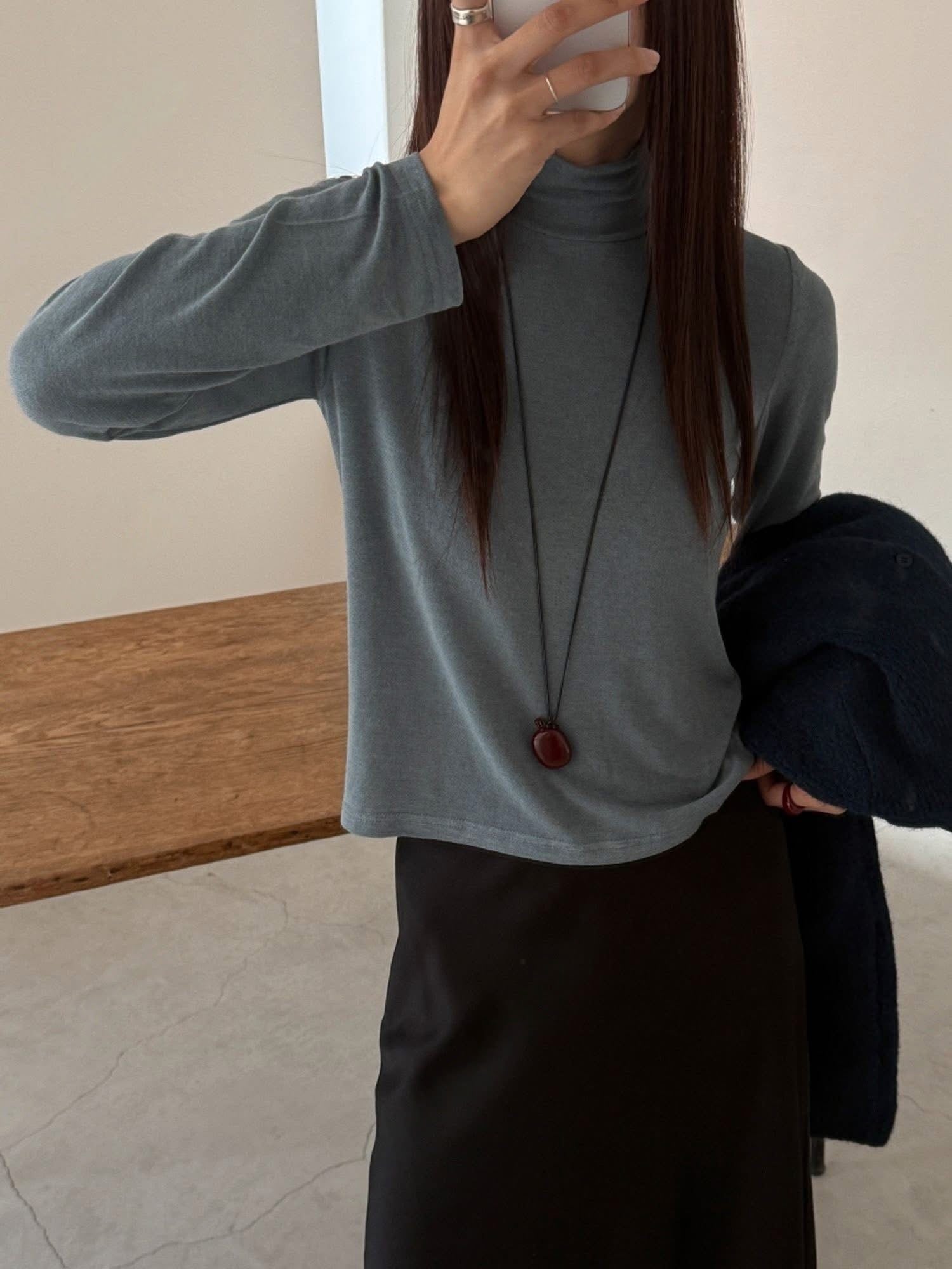 這件微高領上衣穿上去的瞬間,就能理解它的存在感 ☁️輕、柔、貼身卻不緊繃,像一層很溫柔的薄霧包住身形