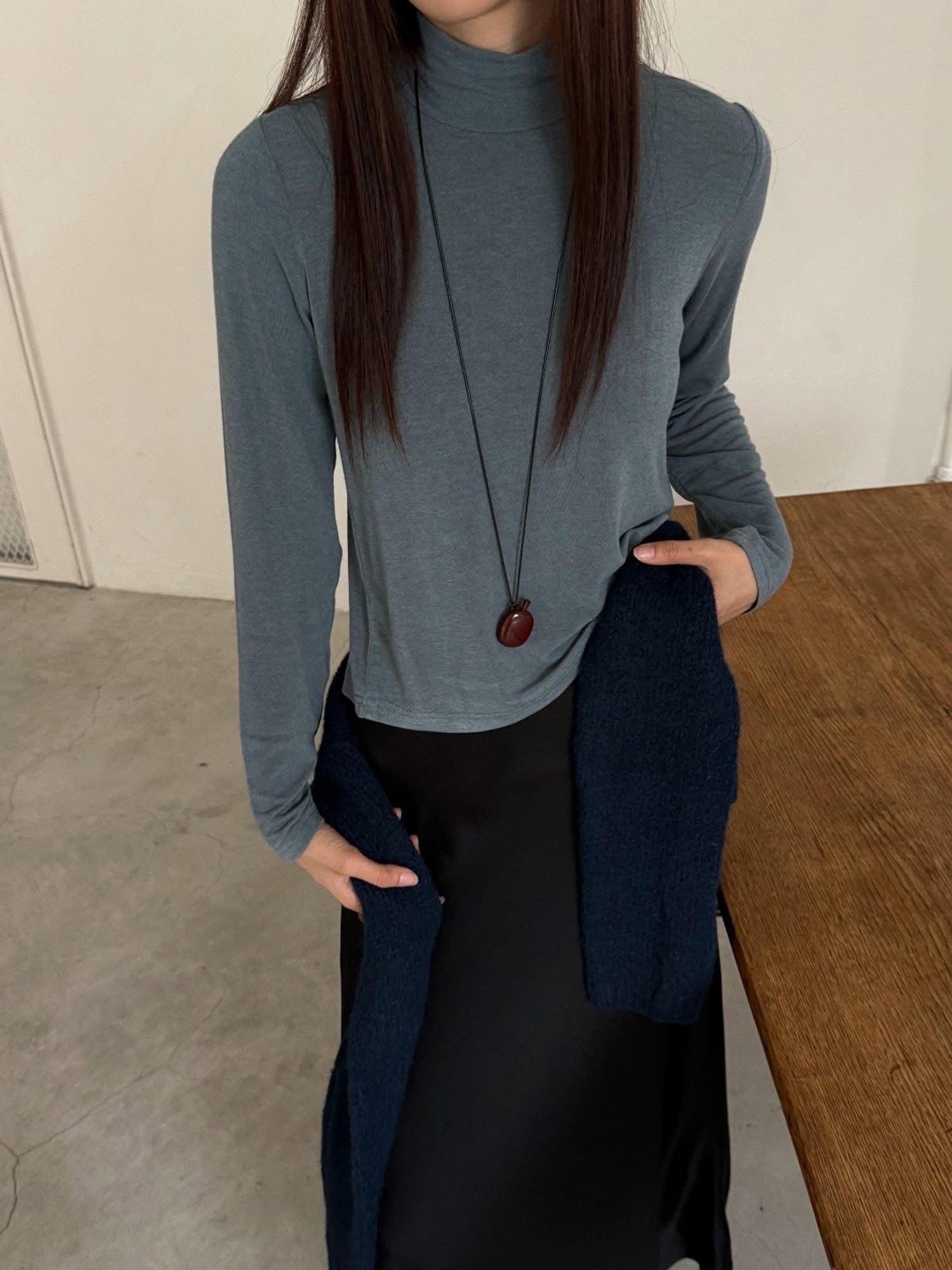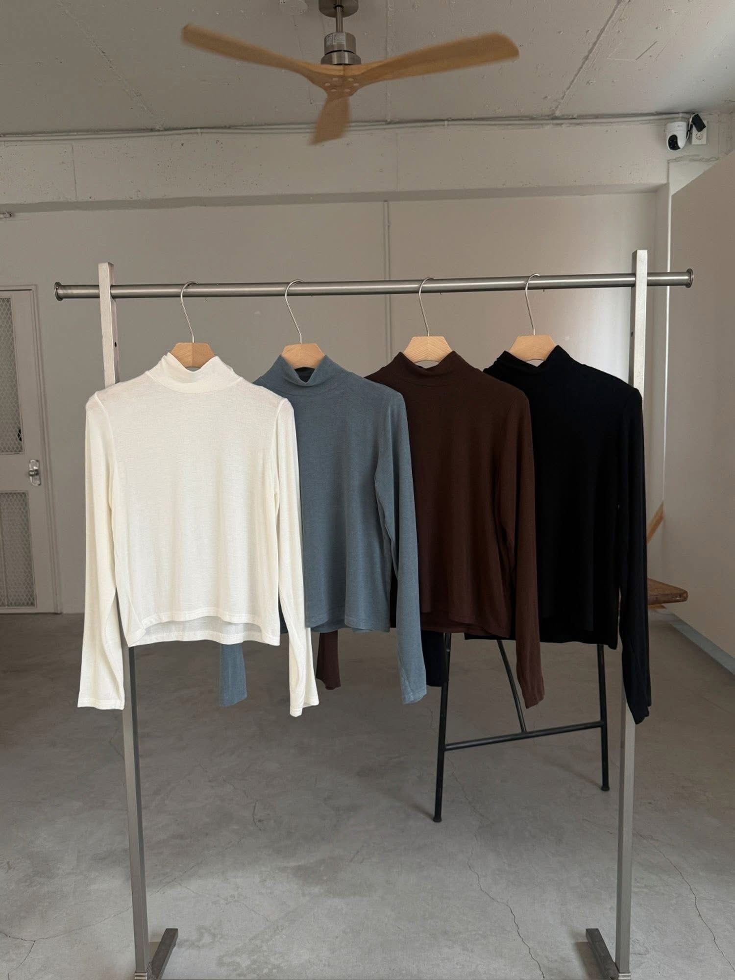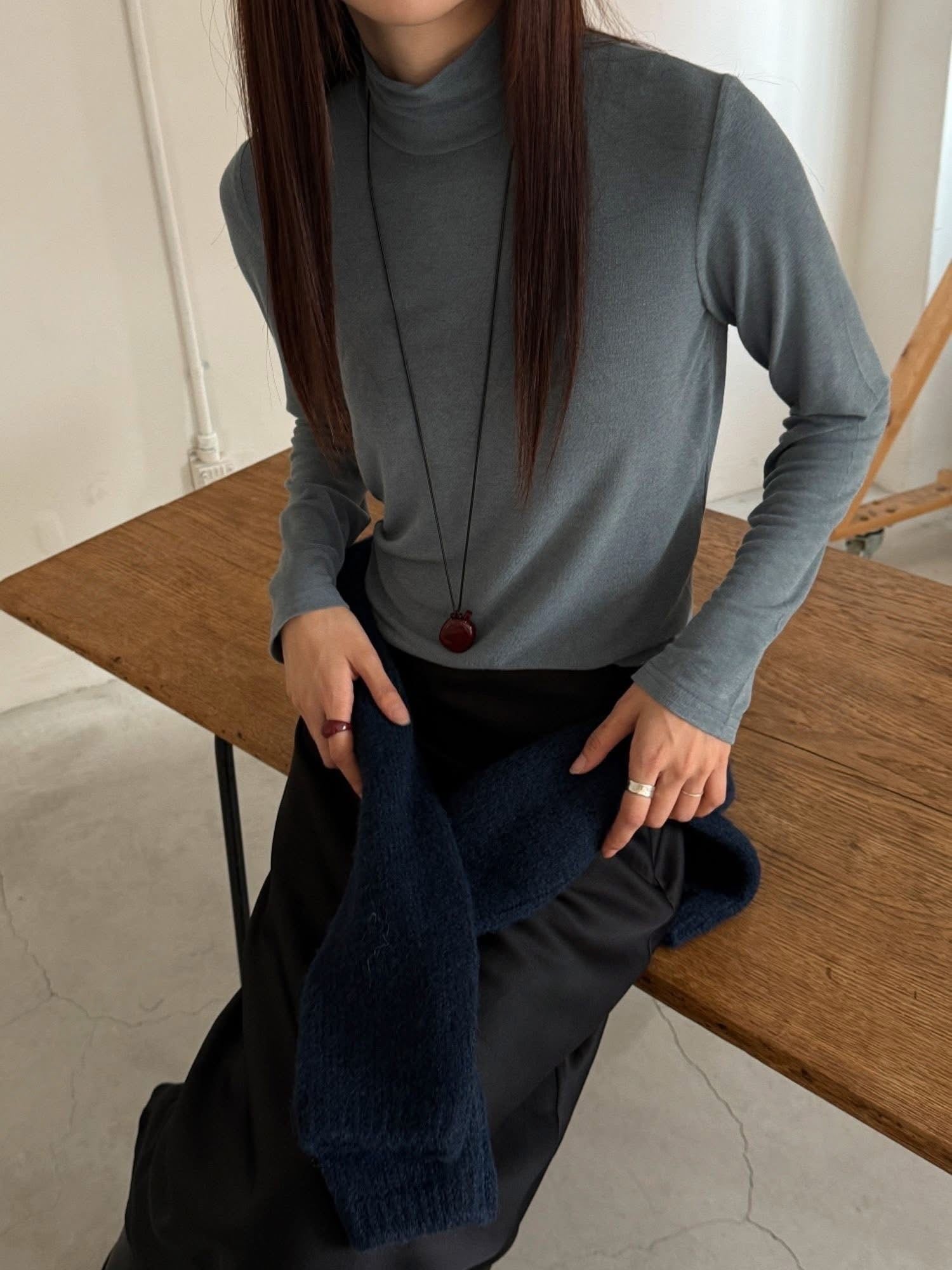 這件微高領上衣穿上去的瞬間,就能理解它的存在感 ☁️輕、柔、貼身卻不緊繃,像一層很溫柔的薄霧包住身形