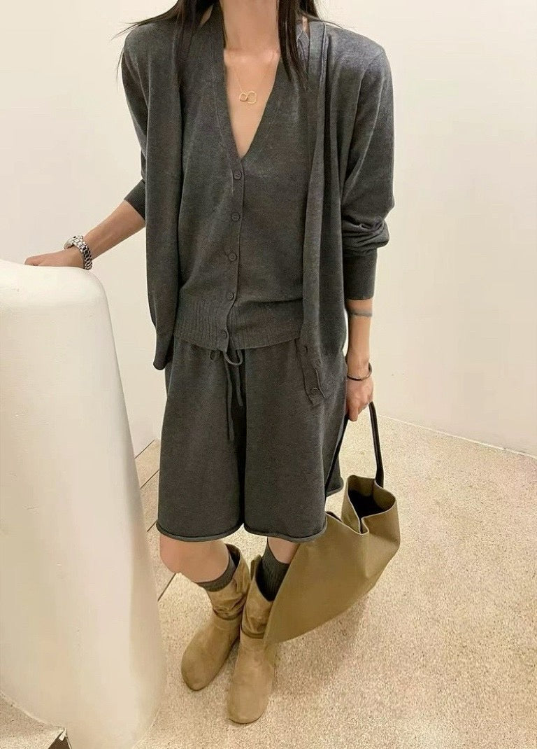 這套是「針織三件式套裝|背心+罩衫+短褲」,把日常的舒適感與俐落層次一次收齊。輕盈針織材質帶來慵懶柔軟的觸感,無論是單穿還是組合,都能展現不一樣的氛圍。