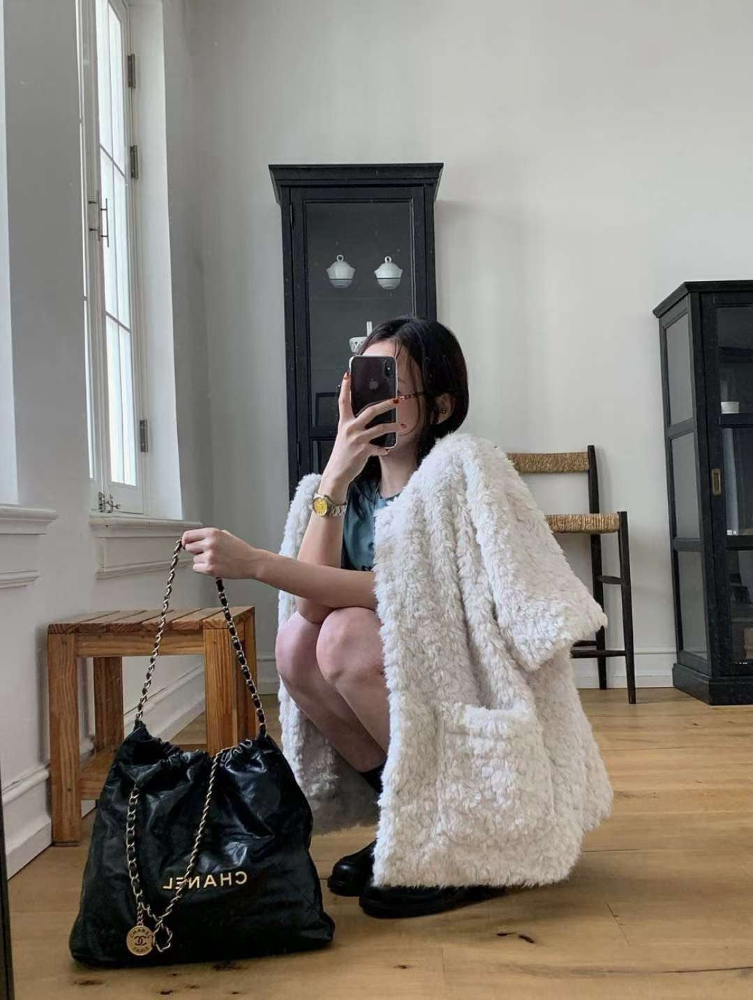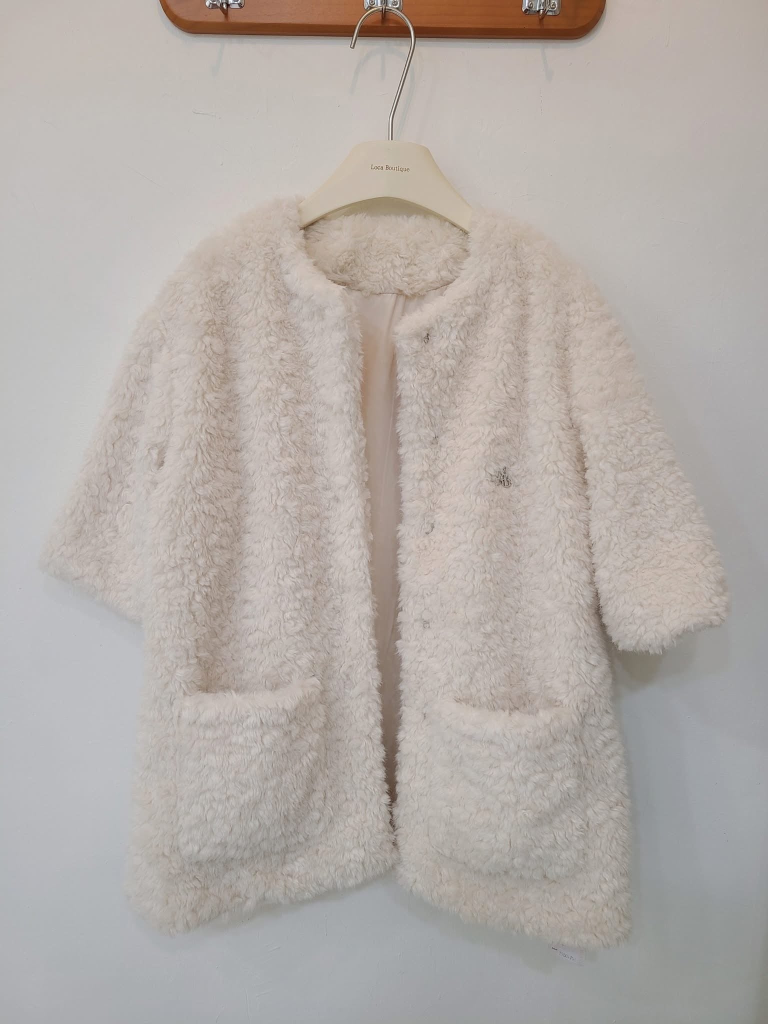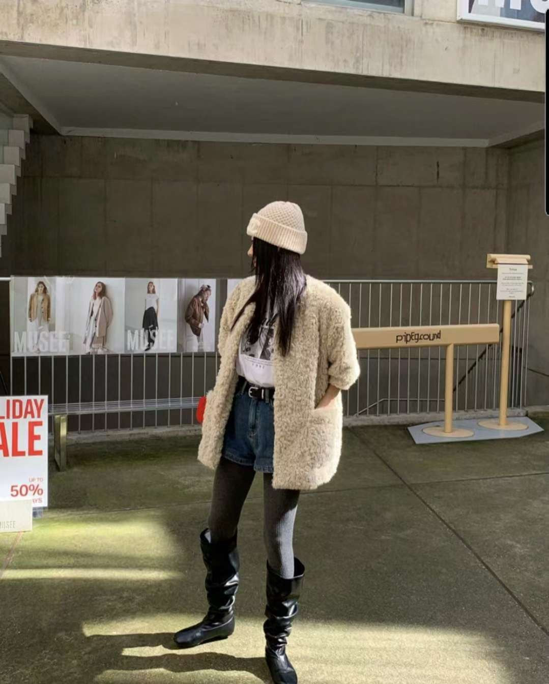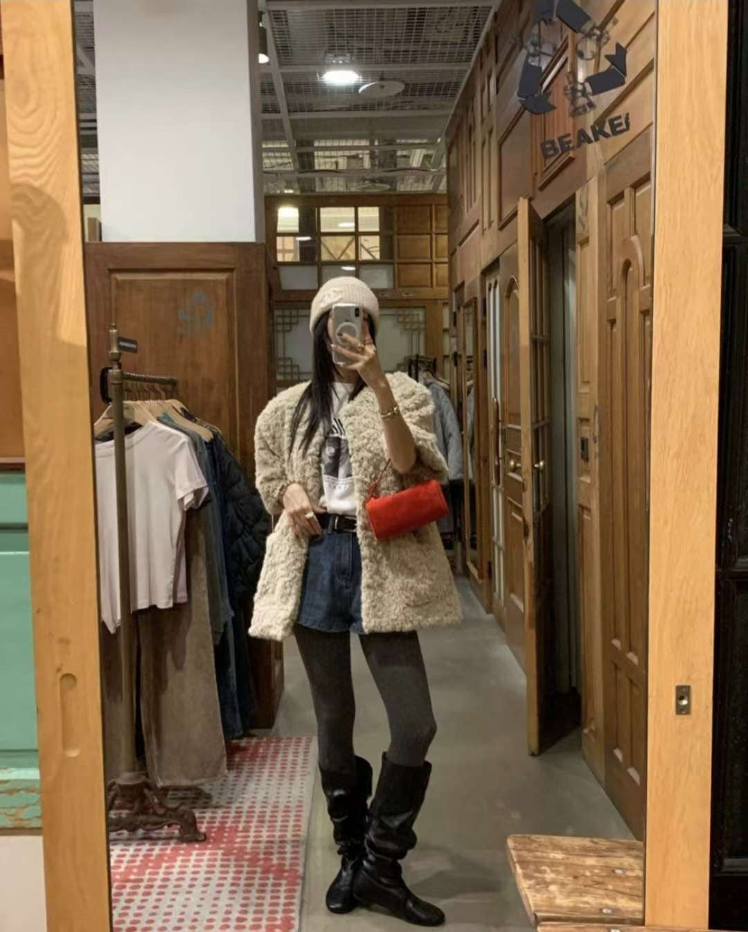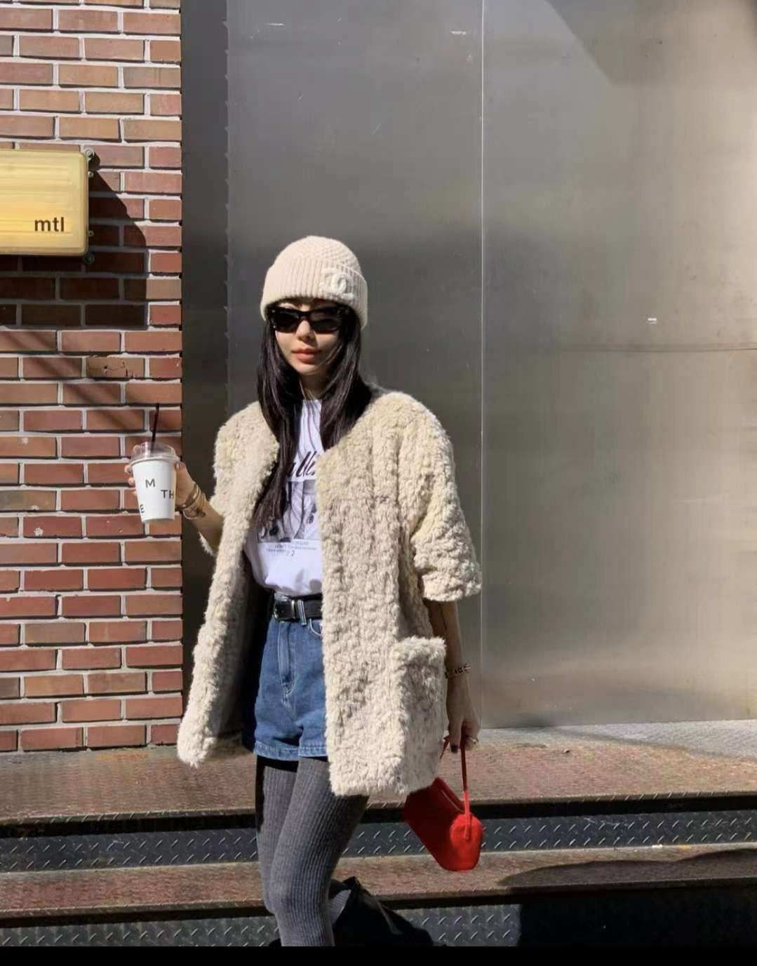 這件泰迪絨短袖外套就是那種輕輕蓬蓬的觸感、穿起來沒有重量,卻能立刻讓整個人變得溫柔起來。