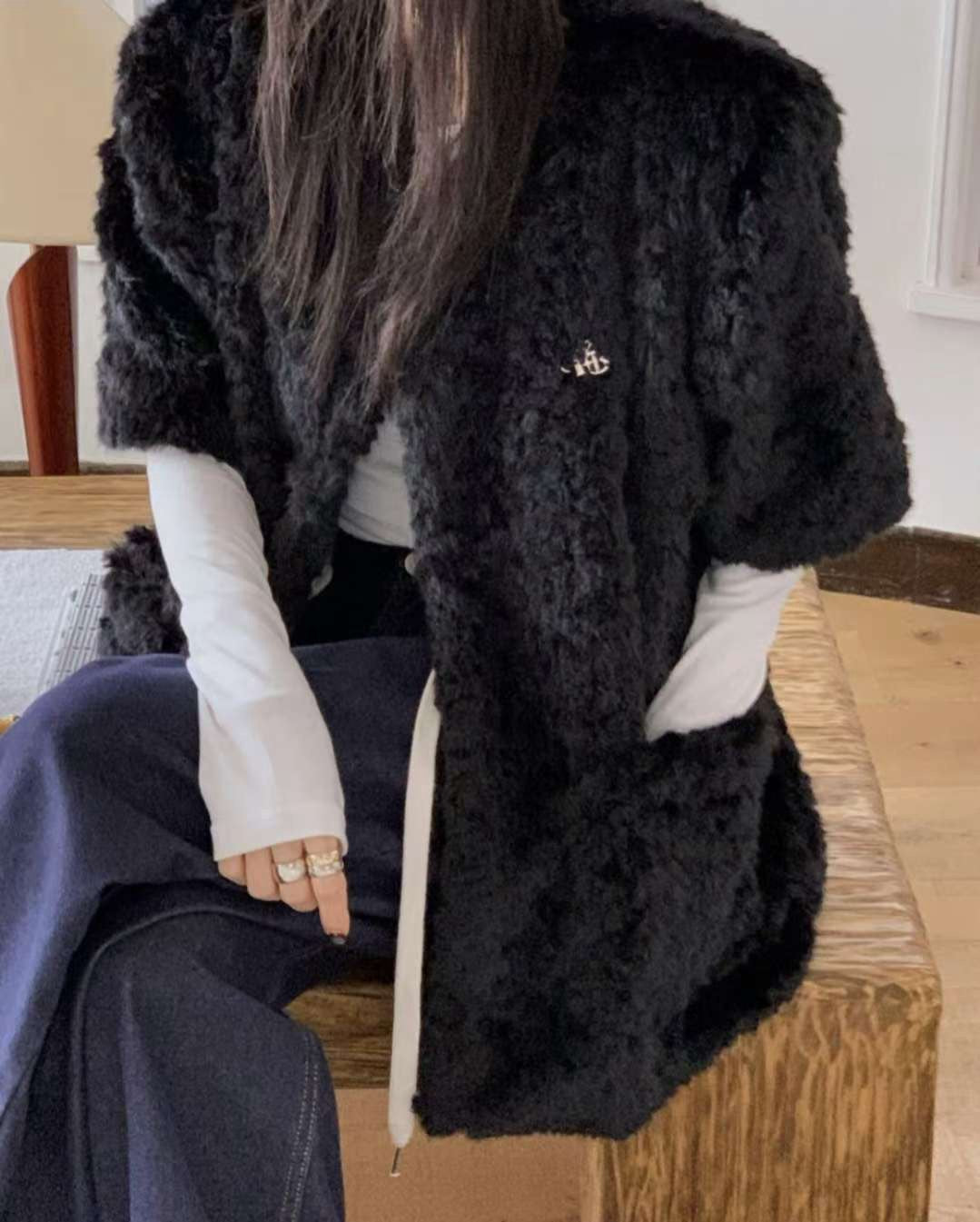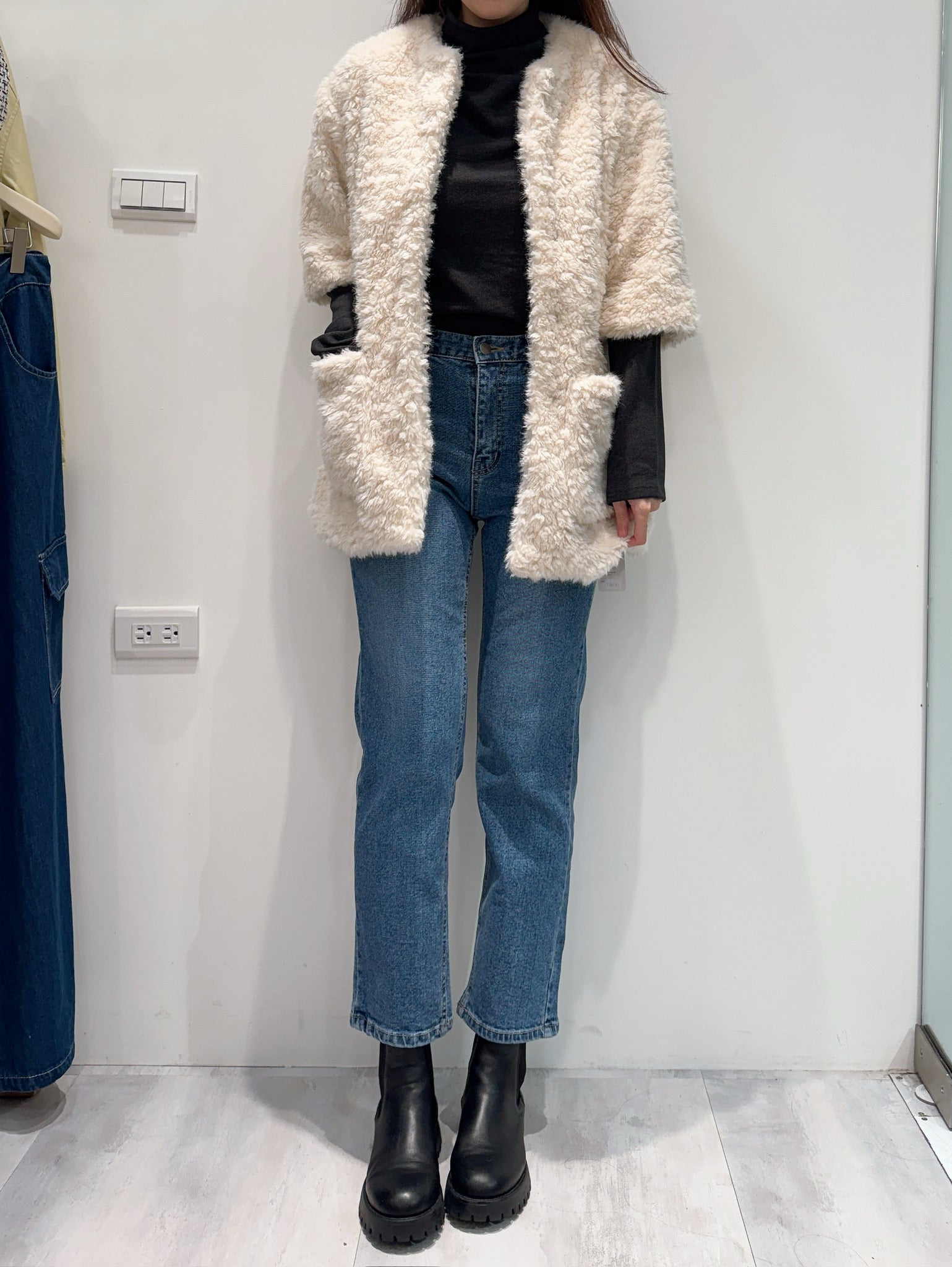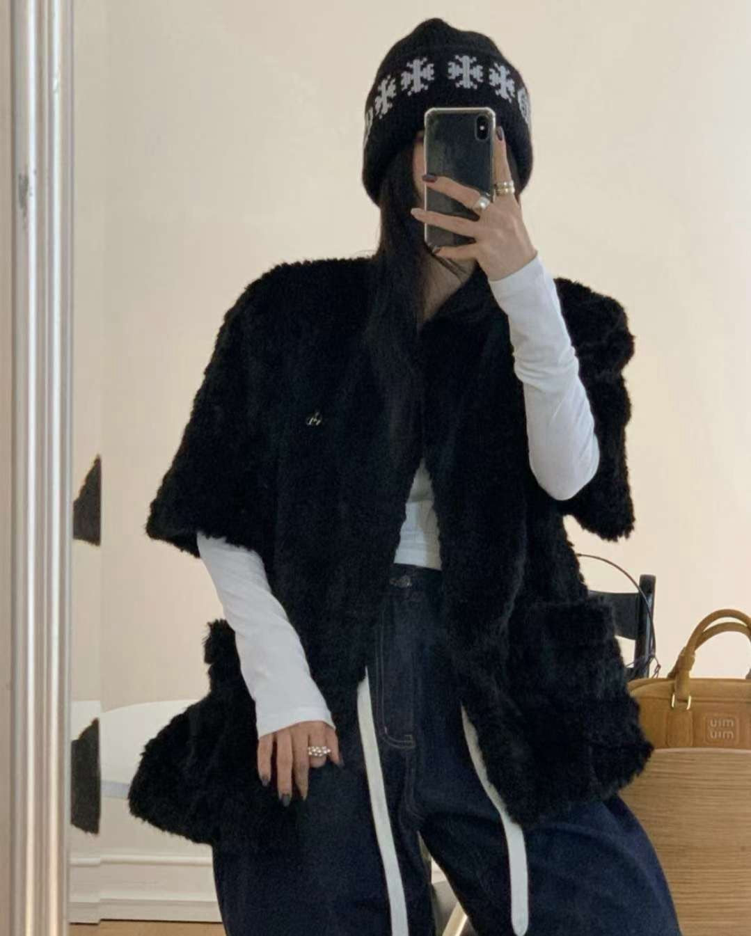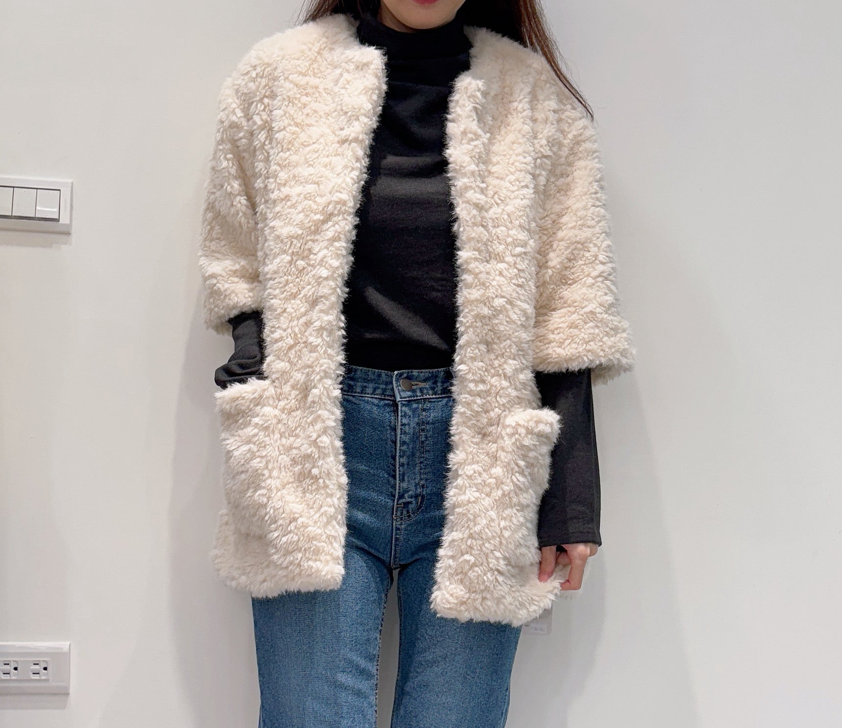 這件泰迪絨短袖外套就是那種輕輕蓬蓬的觸感、穿起來沒有重量,卻能立刻讓整個人變得溫柔起來。