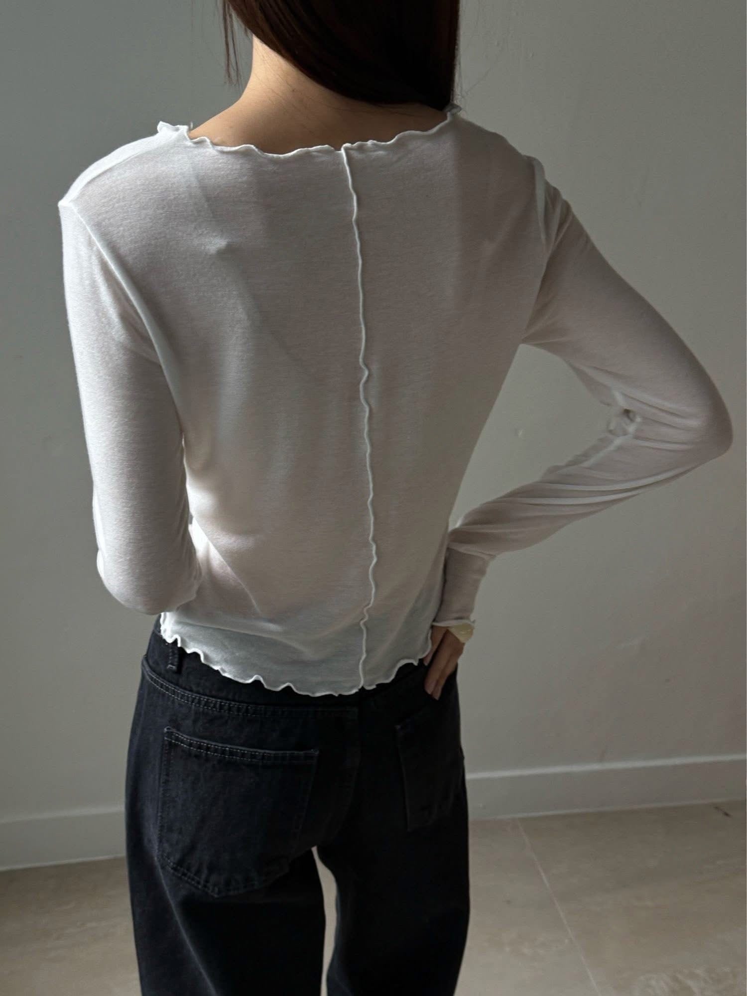 薄棉質波浪車邊壓線上衣