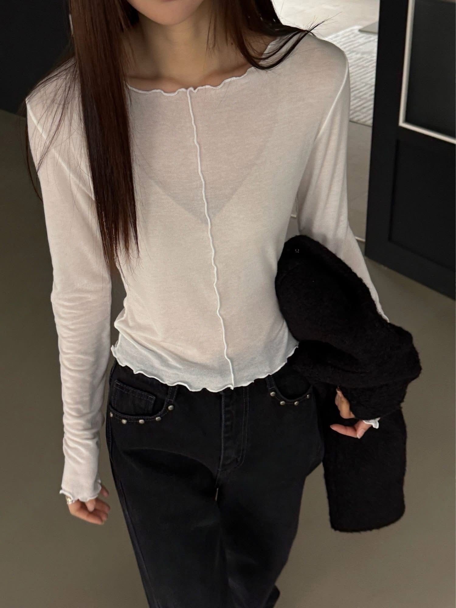 微微透明是本季的各色,單穿或內搭都很合適