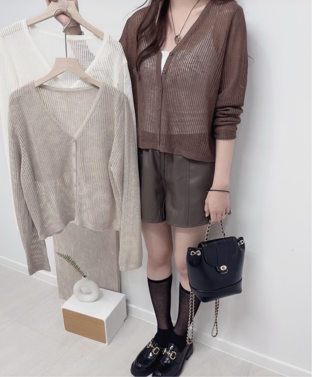 這件薄針織開襟衫的氛圍好溫柔,輕透的針織紋路帶出呼吸感,單穿或當小外套都能營造不同層次。